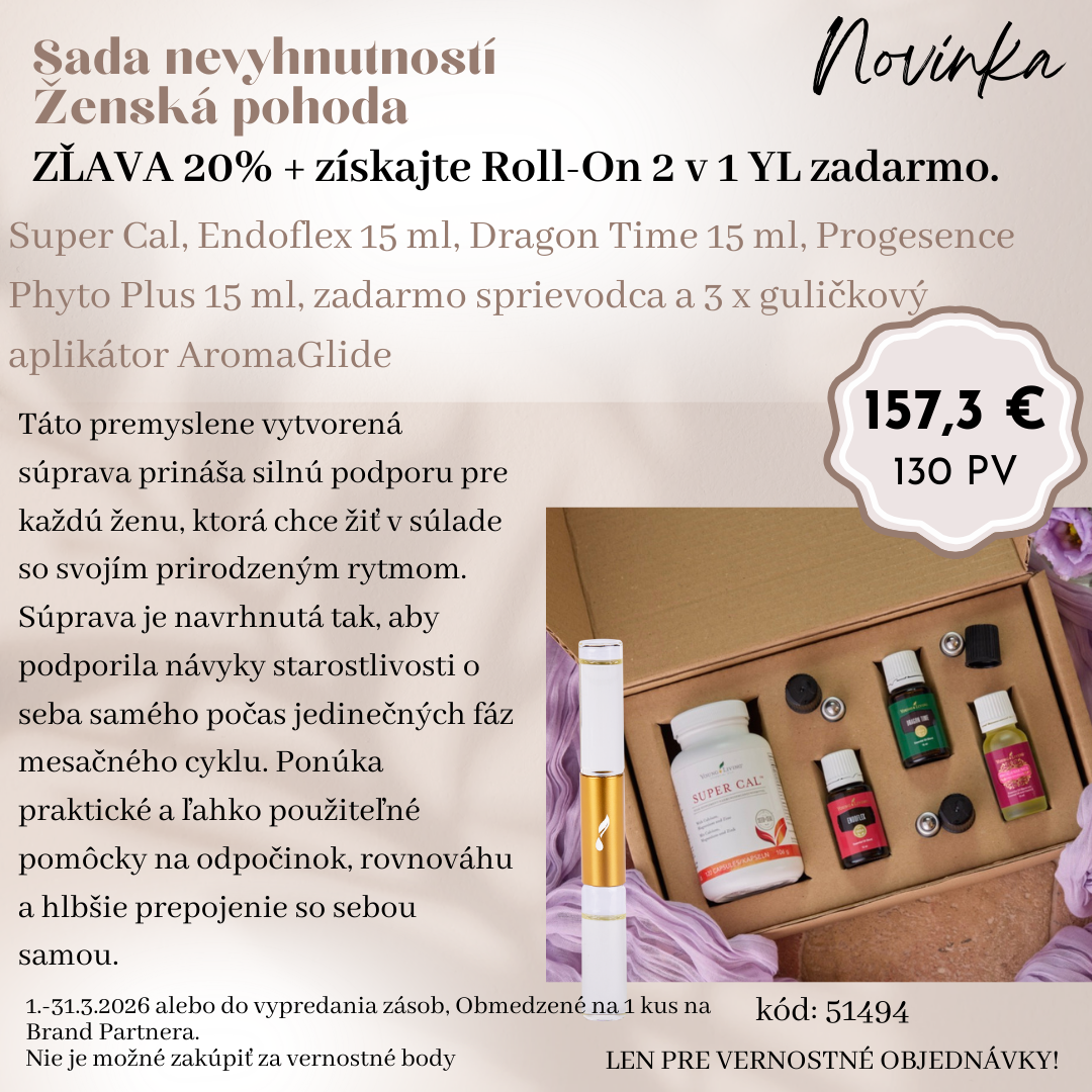 Okrem novej sady sú tento mesiac v akcii aj ďalšie oleje zamerané na hormóny, emócie a psychickú pohodu – najvýhodnejšie vždy v balíčkoch.