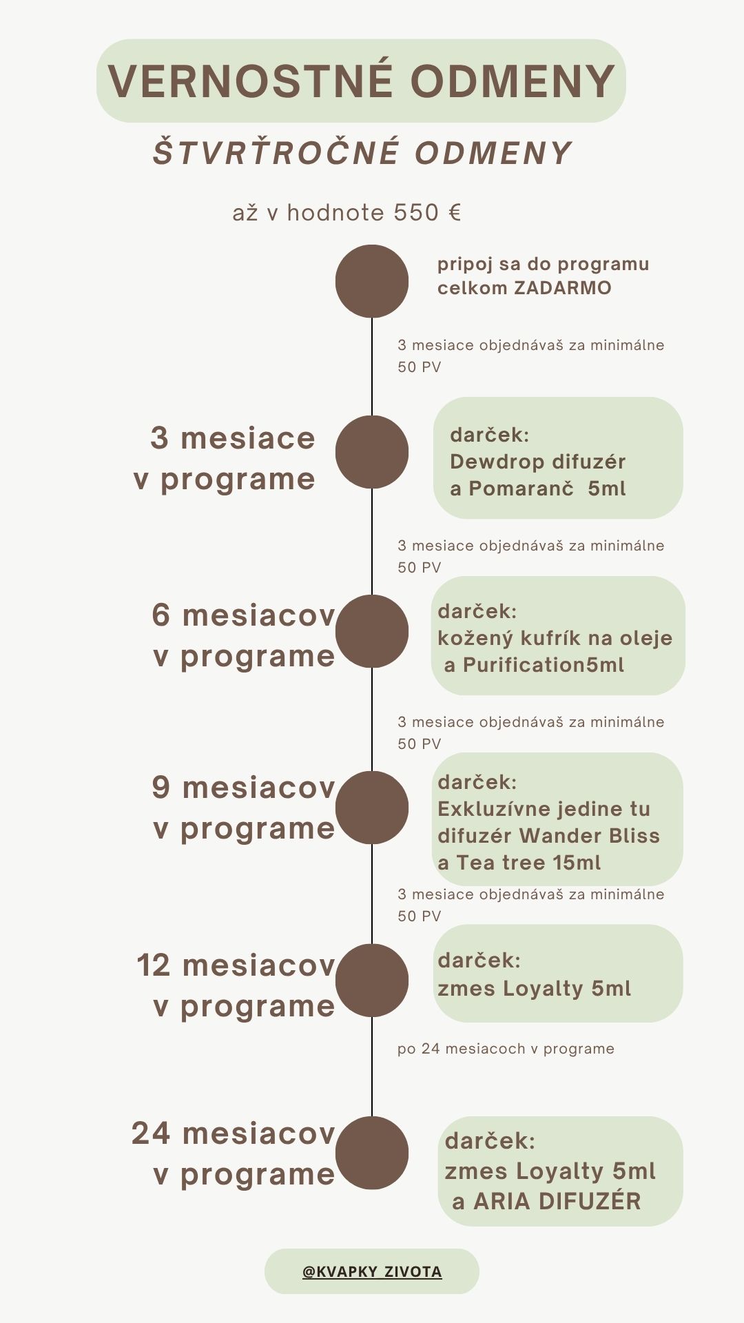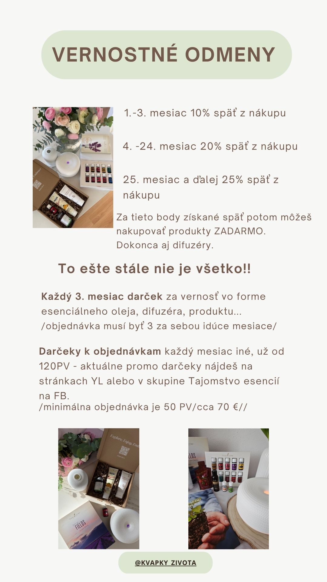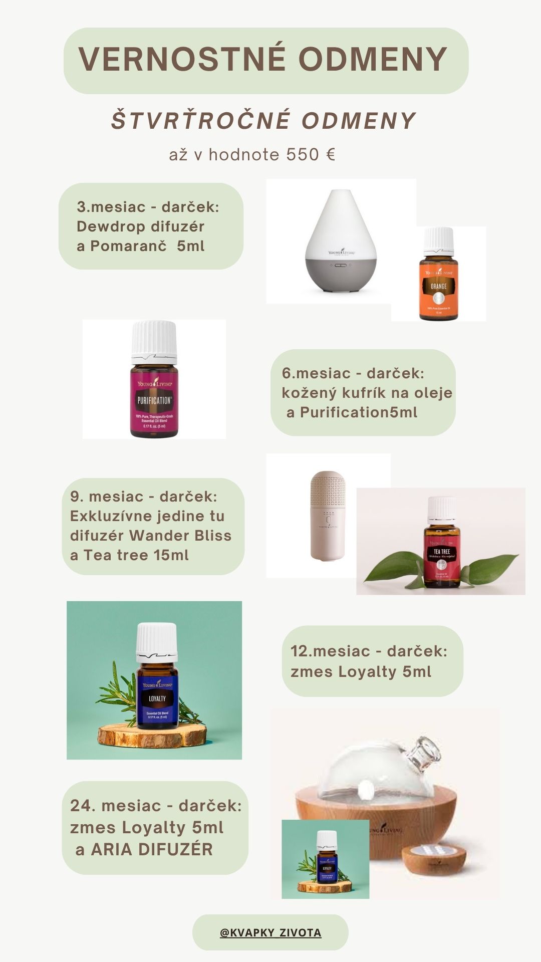 Štvrťročné darčeky za vernosť (difuzéry a produkty v hodnote 716 €).