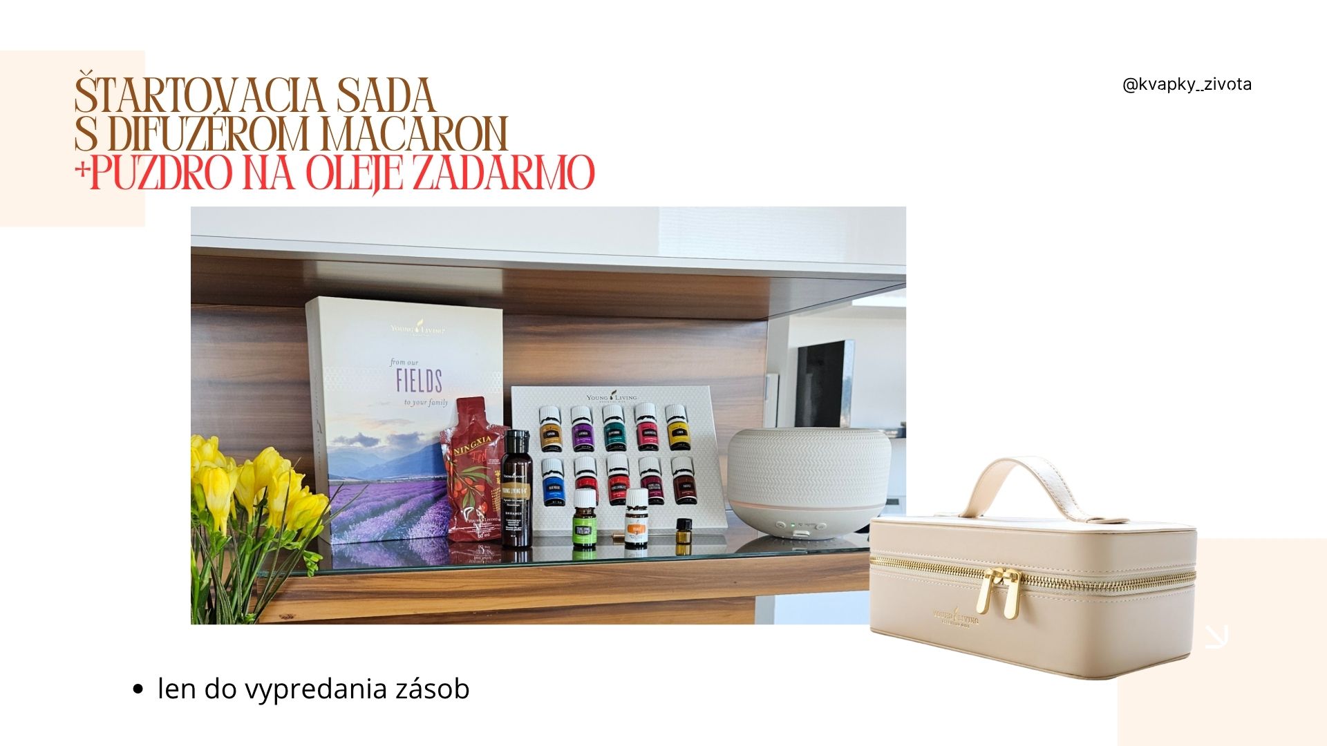 Ak ešte nemáš svoj účet na Young Living, napíš mi na WhatsApp +421915234609 alebo na Instagram @kvapky_zivota. Rada ti pripravím odkaz s tým, o čo máš záujem, a uľahčím ti objednávanie, prípadne ti môžem produkty aj objednať, ako ti to najviac vyhovuje.